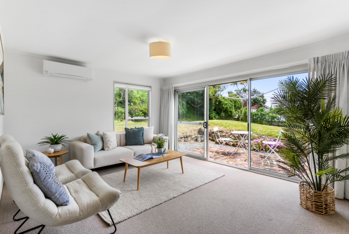 Light-filled and welcoming, the generous living space forms the heart of this home. Elevated to capture all-day sun, it offers an easy connection to a flat, north-facing lawn—an ideal spot for relaxed entertaining, kids, or pets.